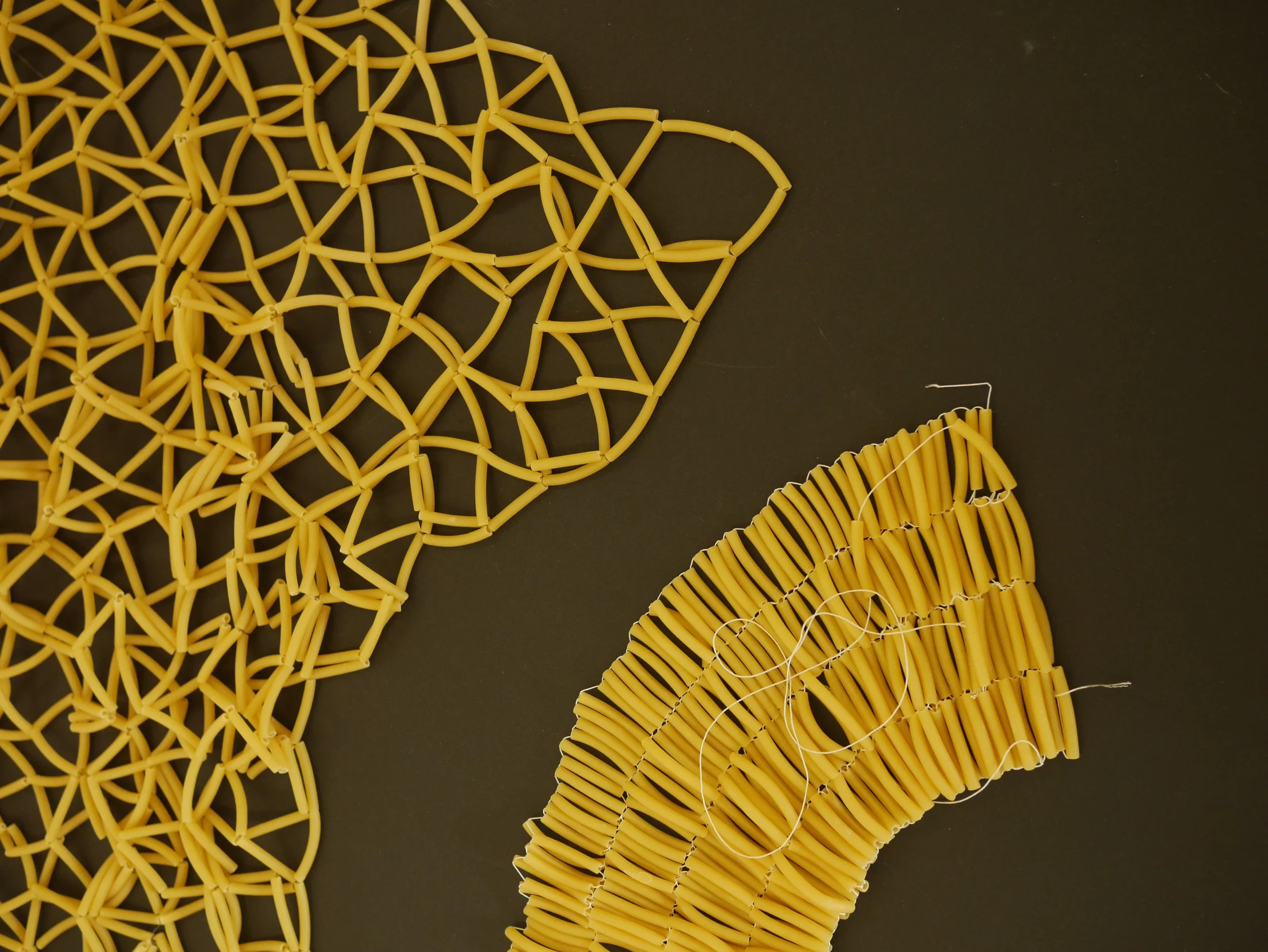 Integrale Formgenerierung aus Hartweizengrieß und Baumwolle mit textilen Eigenschaften.